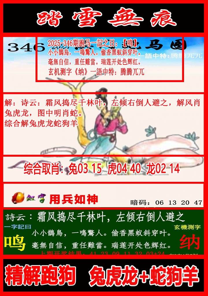 346期杳无音信【四肖中特】铁算盘发表 【杳无音信】