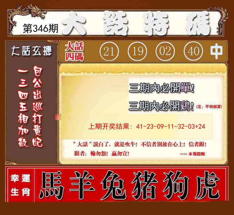 346期百分百承【五肖中特】铁算盘发表 【百分百承】